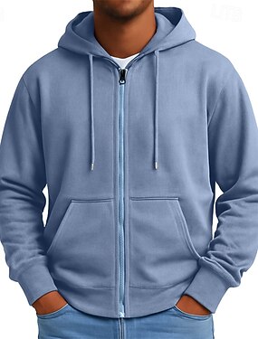 Per uomo Felpa con cappuccio Felpa con zip Felpa con cappuccio in pile Nero Grigio chiaro Grigio scuro Con Cappuccio Semplice Con zip Tasca Frontale Sport & Outdoor Casuale Quotidiano Streetwear Cool