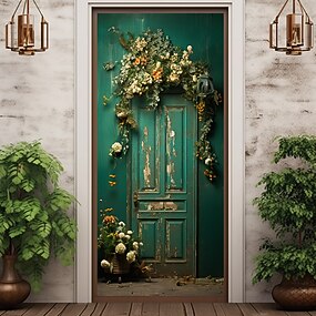 floreale vintage verde porta copre decorazione murale porta arazzo tenda della porta decorazione sfondo porta banner rimovibile per porta d'ingresso indoor outdoor decorazione della stanza di casa
