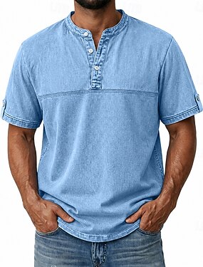 Per uomo Maglia Henley Camicia 100% cotone lavaggio acido Maglietta Manica Corta Tinta unita Retrò Vintage Casual Stile Vintage Tinto in capo Lavato Henley Casuale Estate Primavera Autunno Nero Verde