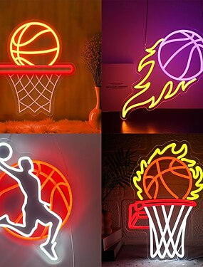 Lampada da parete a LED al neon a forma di pallone da basket, alimentata tramite USB con luminosità regolabile, per interni: camera da letto, sala giochi, sala eSport, stanza per uomini, camera dei