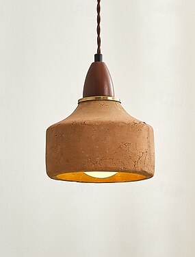 Lampada a sospensione retrò in cemento, stile wabi sabi, lampada a sospensione in ceramica color caffè, lampada a sospensione in legno massello in stile giapponese, lampada a sospensione regolabile in