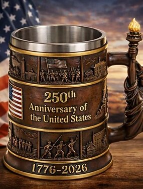 Boccale commemorativo del 250° anniversario degli Stati Uniti, realizzato a mano in resina, con manico a forma di Statua della Libertà, 300 ml/10 oz, da collezione, commemorativo US 1776–2026, ideale