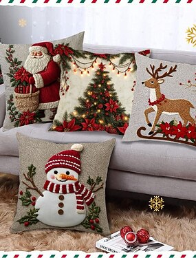 set di fodere per cuscini natalizi caldi, cuscini decorativi stampati in lino, cuscini da divano per feste al chiuso &arredamento per la casa