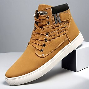 sneakers alte da uomo in similpelle color cuoio con lacci, eleganti scarpe casual per passeggiate, lavoro e outfit da fine settimana