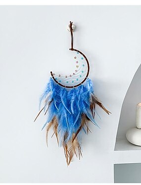 luna acchiappasogni regalo fatto a mano piuma gancio fiore carillon di vento ornamento appeso a parete arredamento arte stile boho 16x55cm / 6.3''x22''