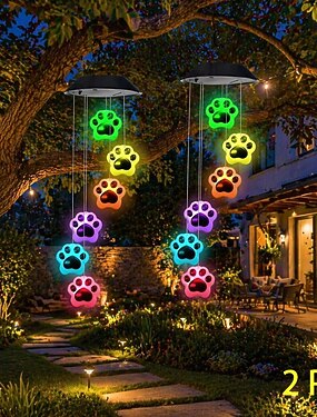 2 luci a vento solari da esterno a forma di zampa di gatto, lanterne sospese RGB impermeabili che cambiano colore per giardino, patio, veranda, balcone, albero – perfette per feste &illuminazione