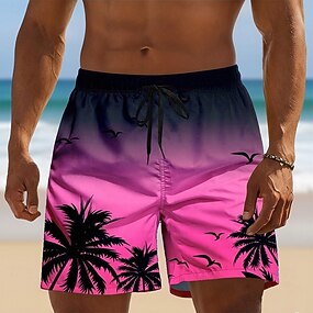 Per uomo Albero di Cocco Colore sfumato Piante Tropicali Costumi da bagno Pantaloncini da mare Pantaloncini da Surf Misura del girovita medio Hawaiano Vacanza al Mare Tasche Laterali fodera in rete