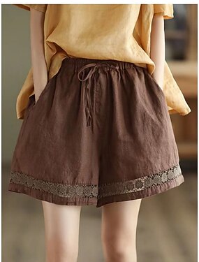 Per donna Finto cotone e lino Shorts Pantaloncini Estivi Shorts da Spiaggia Vacanza Essenziale Casual Corto Vita Alta Semplice Coulisse Tasca Fascia Elastica Comodità Asciugatura Rapida Morbido