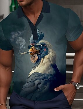 Per uomo Gallo Maglia da golf Manica Corta Magliette polo Camicie con Colletto Casual Divertente Abbigliamento casual alla moda Abbigliamento da vacanza Abiti da festa Bottoni Stampa 3D Estate Nero