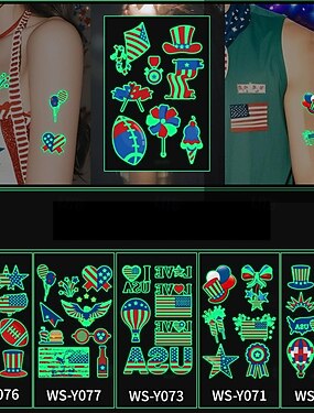 40 adesivi per tatuaggi con luce notturna per il giorno dell'indipendenza, impermeabili, adesivi per il viso con bandiera americana, calzini per feste, adesivi per tatuaggi celebrativi