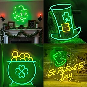 Insegne al neon per la festa di San Patrizio, decorazioni murali, insegne a LED con trifoglio, moneta d'oro e cappello, insegne al neon per bar, per camera da letto, insegne luminose USB per bar,