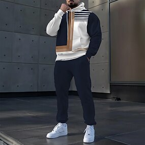 Per uomo Geometrico Blocco di colori 2 pezzi Set di felpe 3D Tuta Felpa con Cappuccio Manica Lunga Pantaloni lunghi Con Cappuccio Casual Quotidiano Moderno Athleisure Stampa 3D Primavera Autunno