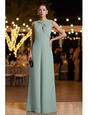 Tute Lunghezza al pavimento Abito da cerimonia per signora Senza Maniche Scollo a Barca Elegante Semplice Formale Ospite di nozze Serata Formale Tessuto Elasticizzato con Tinta unita