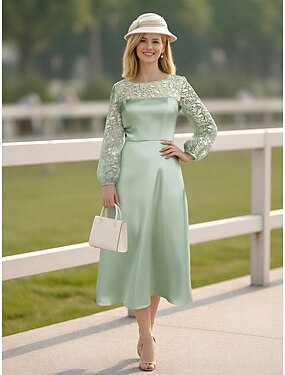 Linea ad A Lunghezza Tè Vestito da Festa Abito da Cocktail Abito da invitata a nozze Abito da cerimonia per signora Manica Lunga Scollo a Barca Elegante Cocktail Ospite di nozze Festa di fidanzamento