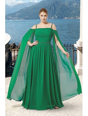 Linea ad A Lunghezza al pavimento Abito da invitata a nozze Abito Formale Abito da sera Abito da cerimonia per signora Manica Lunga Senza Spalle Elegante Semplice Formale Chiffon con Pieghe