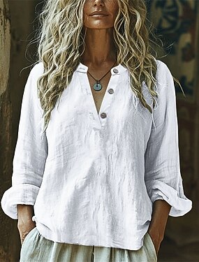 Per donna Camicia Camicia in cotone e lino Maglia Henley Finto cotone e lino Bottoni Semplice Quotidiano Elegante Casual Manica Lunga Scollo a V Top Regolari Quotidiano Lavoro Ferie Blu Bianco Beige