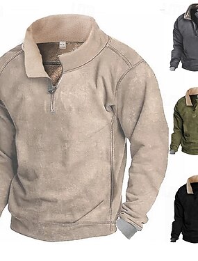 Per uomo Maglia Felpa con cappuccio in pile Felpa con zip corta Felpa con cappuccio tattica Nero Verde militare Blu marino Grigio scuro Beige Colletto Mao Semplice Cerniera Sport & Outdoor Casuale