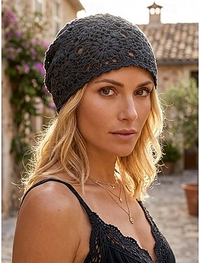 Berretto da donna in maglia di cotone con stampa floreale in stile boho, disponibile in diversi colori, ideale per l'uso quotidiano, i viaggi, le vacanze e i resort al mare.