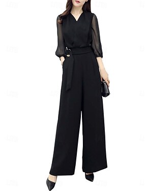 Per donna Normale Tuta Attivo Tinta unica Manica Lunga Gamba larga Scollo a V Patchwork Quotidiano Vacanza Vestibilità regolare Nero Estate
