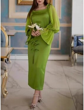 Tubino Colonna Lunghezza alla caviglia Vestito da Festa Abito da Cocktail Abito da invitata a nozze Abito da cerimonia per signora Manica Lunga Scollo a V Elegante Serata Formale Ricevimento di
