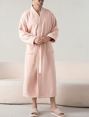 Per uomo Pigiama Pigiami Accappatoio Semplice Moda Elegante Classico Casa Quotidiano Da letto Flanella Poliestere Calore Termico Comodità Morbido Scollo a V Manica Lunga Autunno Inverno Rosa Cammello