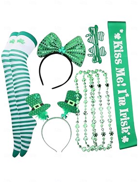 set di accessori verdi per la festa di San Patrizio da donna: cerchietto, calze e collana con la scritta "Kiss Me I'm Irish" &di più per le celebrazioni festive
