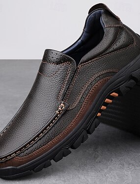 Mocassini slip-on da uomo in similpelle marrone scuro, scarpe casual antiscivolo e resistenti per gli spostamenti in ufficio e le passeggiate quotidiane