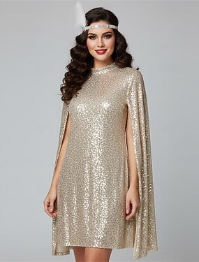 Anni Ruggenti Anni 1920 Mini Sopra il ginocchio Vestito Mantello Abito da cocktail Manica divisa Manica del mantello Il grande Gatsby Invitato al matrimonio Paillettes Costume Per donna Capodanno San