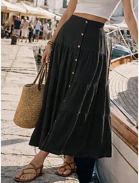 Per donna Gonna da vacanza Elegante Moda Casual Maxi Misura del girovita medio Gonne Inelastico Quotidiano Spiaggia Nero Estate