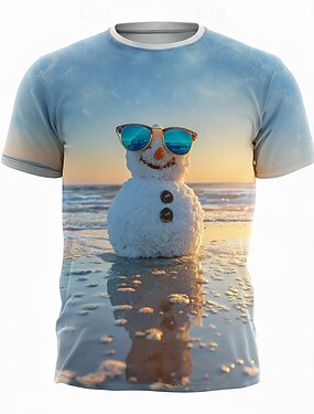 maglietta natalizia da spiaggia con pupazzo di neve 3D per uomo, divertente outfit per le vacanze con occhiali da sole, top estivo per feste di Natale o maglietta per le vacanze