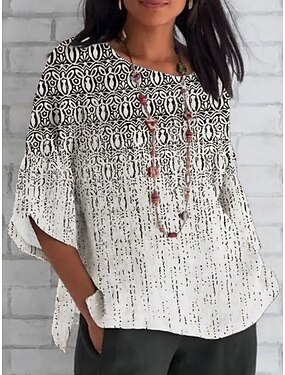 Per donna Camicia Stampato Farfalla Quotidiano Casual Manica 3/4 Girocollo Top Regolari Quotidiano Ferie Nero Bianco Estate Primavera Autunno