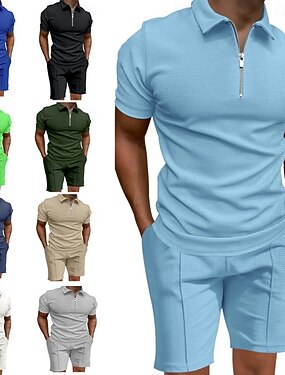 Per maschio Magliette Polo a Nido d'Ape Completi T-shirt Tuta Set pantaloncini e T-shirt Manica Corta Girocollo Estate Semplice Ginnastica Casual 2 Pezzi Zip a un quarto Casuale Vacanza Abbigliamento
