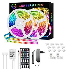 strisce led rgb 65,6ft -20m 32,8ft-10m tape light smd5050 strisce led con telecomando con 44 tasti telecomando ir e alimentatore 12v cambio colore flessibile si applica alla festa in camera da letto