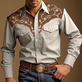 Per uomo Stampa Floreale Etnico Fiori Camicia Camicia Western Camicia da cowboy Manica Lunga Vintage Retrò Casuale All'aperto Abbigliamento da lavoro Primavera Autunno Collo ripiegato Due tasche