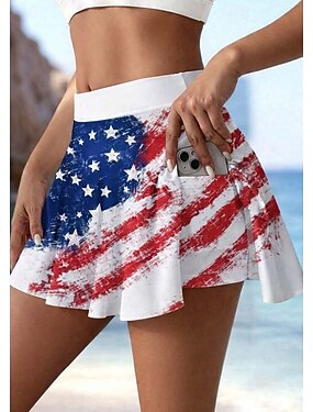 Gonna patriottica per il giorno dell'indipendenza, gonna da vacanza da donna, moda hawaiana, abbigliamento da spiaggia, pantaloni da bagno, minigonne a vita alta, grafica, elasticizzata, per tutti i