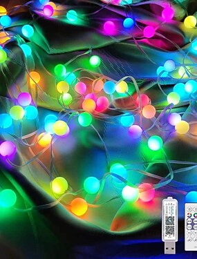 Mini luci a sfera RGB, impermeabili IP65, controllo tramite app Bluetooth, alimentazione USB, telecomando a 24 tasti con timer, decorazioni per interni/esterni, giardino, patio, matrimonio, festa,
