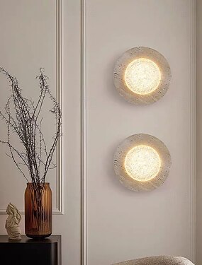 Lampada da parete a doppia testa per interni, stile wabi-sabi giapponese, giallo naturale, travertino, camera da letto, soggiorno, parete di fondo, corridoio, hotel