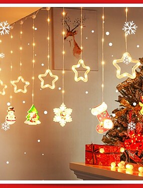 Catena luminosa decorativa natalizia da 3 m, 10 pentagrammi pendenti, fiocco di neve, albero di Natale, telecomando a 8 funzioni, batteria USB/AAA, luce decorativa per feste e feste da interni