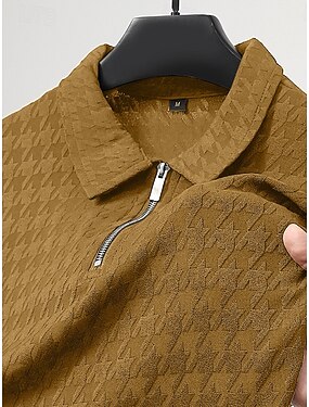 Per uomo Polo Testurizzato Casuale Ferie Bavero Zip a un quarto Manica Corta Moda Essenziale Pied-de-poule Zip a un quarto Estate Primavera Tutte le stagioni Vestibilità regolare Nero Bianco Giallo