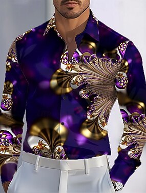 Per uomo Geometrico Sfumatura Linea Camicia Camicia con colletto alla coreana Manica Lunga Moda Casual Abbigliamento Quotidiano Ferie Primavera Autunno Collo alla coreana Colletto alla coreana Stampa