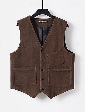 Per uomo Gilet in velluto a coste Gilet Vacanza Feste Affari Moda Casual Primavera Autunno Tasca Bottoni Poliestere Confortevole Semplice Monopetto Un Bottone Scollo a V Vestibilità regolare Nero