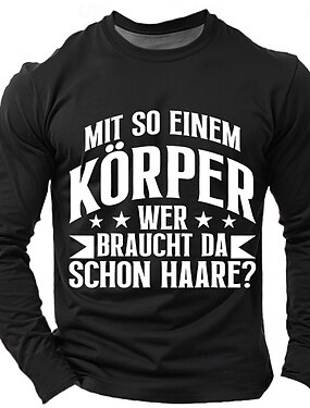 Maglietta grafica a maniche lunghe da uomo - Divertente maglietta con la citazione 'Con un corpo del genere chi ha bisogno di capelli?' umorismo di stile di vita