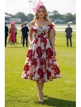 Linea ad A Lunghezza alla caviglia Abiti da Cocktail Abiti da festa Elegante Alto Basso Senza Maniche Scollo a Barca Formale Ospite di nozze Tasca Raso con Stampa floreale Tasca