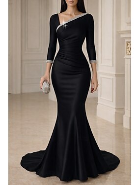 Tubino Colonna Lunghezza alla caviglia Vestito da Festa Abito da Cocktail Abito da invitata a nozze Abito da cerimonia per signora Manica 3/4 Monospalla Elegante Cocktail Formale Ospite di nozze