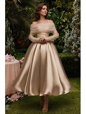 Abito da ballo Linea ad A Lunghezza alla caviglia Abiti da Cocktail Abiti da festa Elegante Vintage Manica Lunga Senza Spalle Matrimonio Formale Staccabile Raso con Scialle