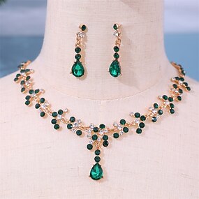 Set di Gioielli 2 Verde Con diamantini Lega 1 Collana Orecchini Per donna Elegante Vintage Moda Stile Vintage Classico Parure di gioielli Per Matrimonio Feste San Valentino