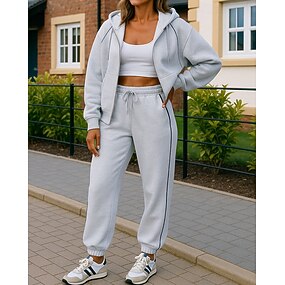 Per donna Tuta da Ginnastica Pantaloni da Tuta Felpa pullover Tasca con cerniera Tinta unita Completo Abbigliamento Primavera Autunno Nero Rosa Palestra Allenamento Corsa Antivento Manica Lunga Sport