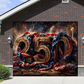 4 luglio 2026 250° Memorial Day Arazzo Bandiere Copertura Porta Garage Aquila Bandiera Americana Stampa 3D Moderna Festa Patriottica Fondali per Riprese Regalo Decorazione per la Casa