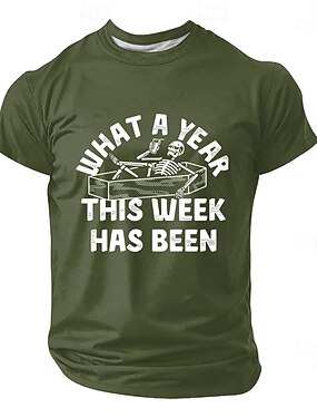 uomo che anno è stato questa settimana scheletro bara divertente sarcastico umorismo nero meme maglietta grafica vestibilità regolare girocollo casual lavoro stress regalo abbigliamento firmato