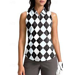 Per donna Geometrico Maglietta sportiva Polo da golf Maglia da tennis Senza Maniche Cerniera Floreale UPF50+ Resistente ai Raggi UV Alta elasticità Traspirante Tennis Golf Pickleball Collo ripiegato
